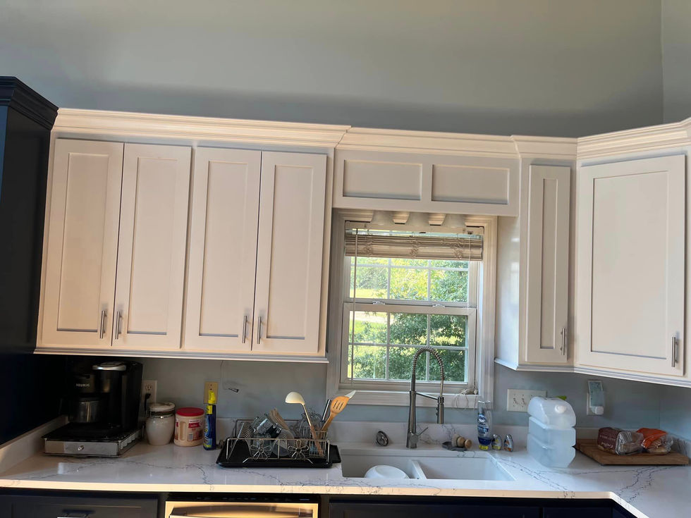 Explore our modern kitchen designs featuring white and navy blue cabinets, marble countertops, and stainless steel appliances. Our designs also include bright, modern kitchens with blue and white cabinets, creating a fresh and inviting space.